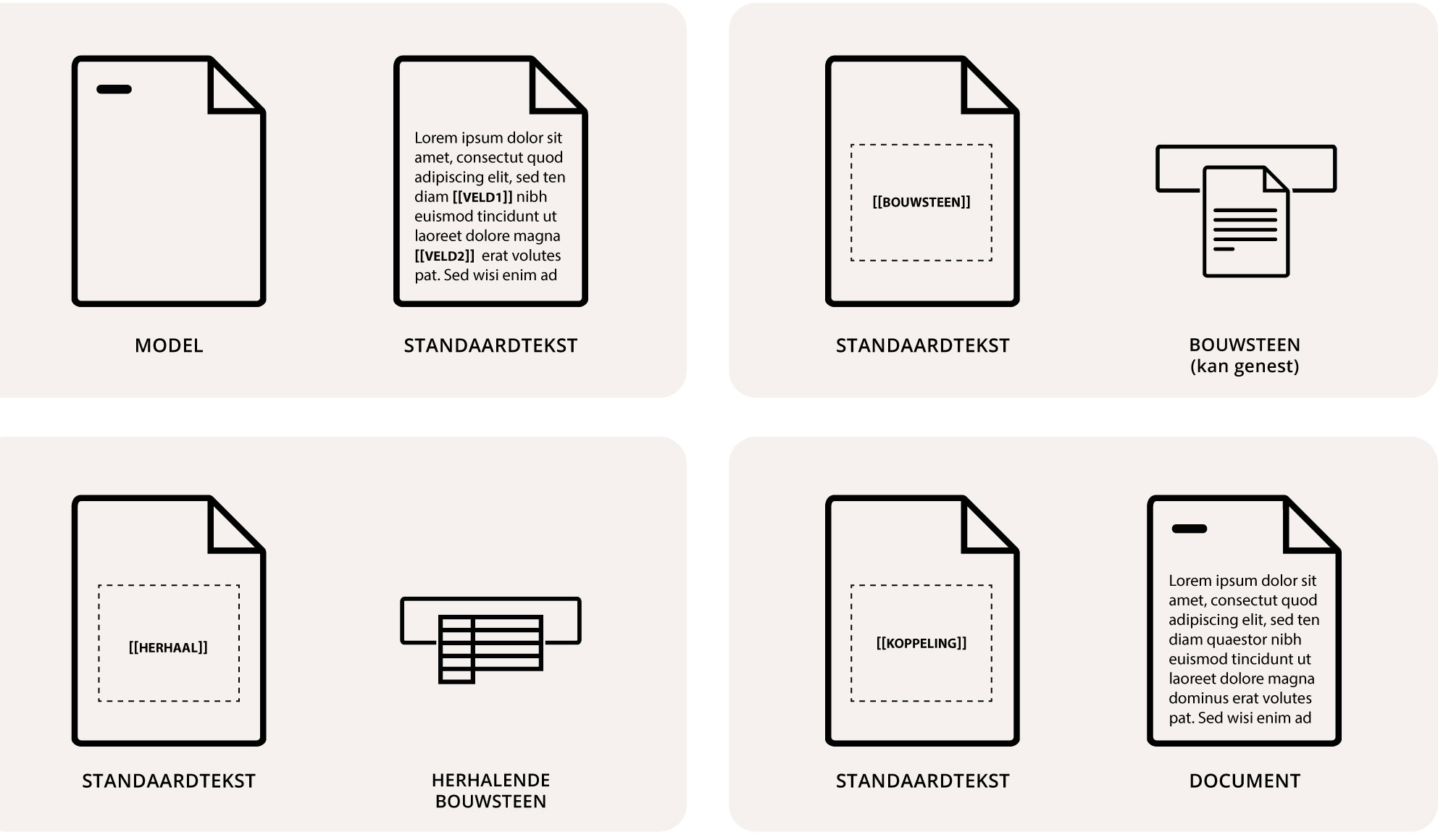- Bestaande documenten kunnen worden gebruikt als basis voor modellen en/of standaard teksten;