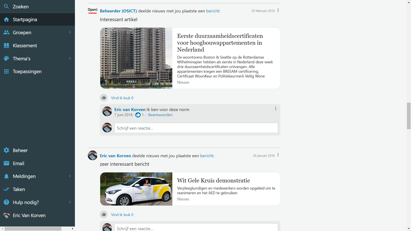 - Werkomgeving in uw eigen corporate look en feel (groepen, medewerker profielen, nieuws).